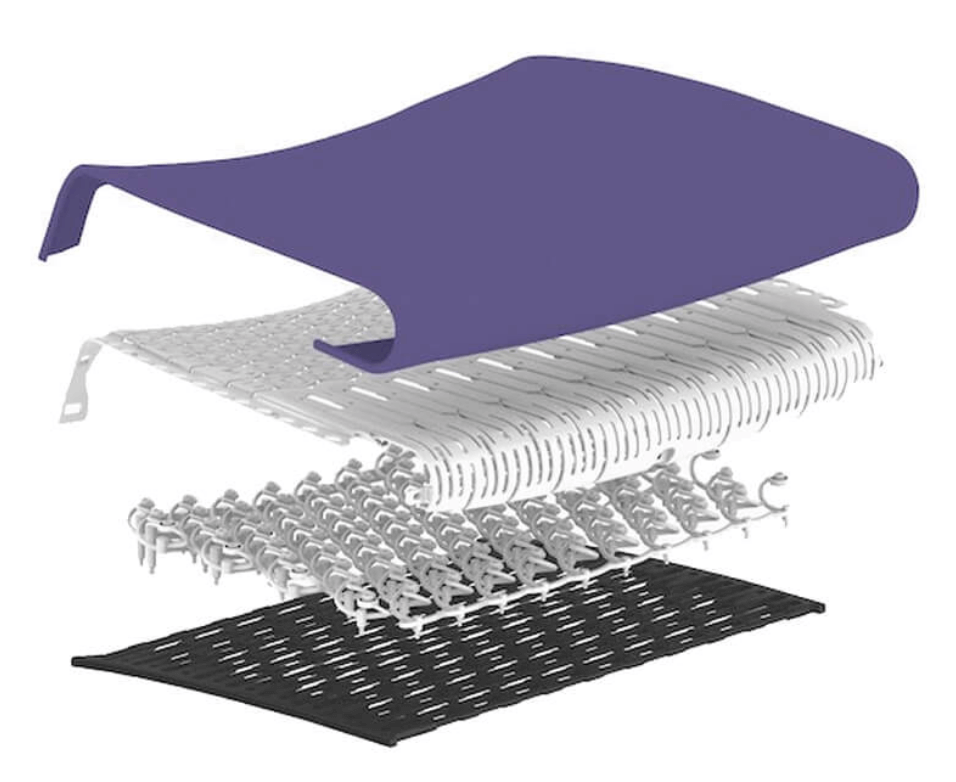 The Embody seat is comprised of four different support layers—each with its own set of material properties, and each created with a different manufacturing process, all working together, orienting themselves to your shape with a degree of fidelity so high they even accommodate pockets..