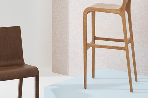 In Foglia, Marco Ferreri explores the idea of lightness all the way until achieving a very thin wooden shell, a continuous surface of a millimetre and a half on a solid wood structure. Solid yet fluid, elegant and with character, this chair has become an icon and the model for many ultralights to follow.