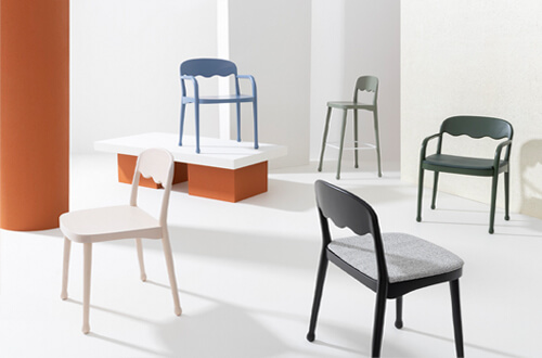Frisée is a collection that combines the solidity of wood with an ironic and joyful frivolity.