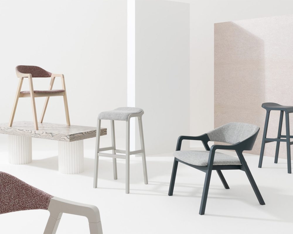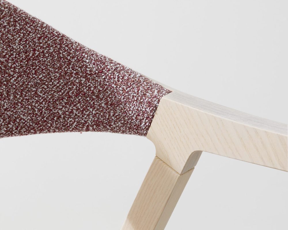 What inevitably makes Layer stand out is the splay in its legs. The resolute profile stems from the perfect embrace between the two components: wood and upholstery.