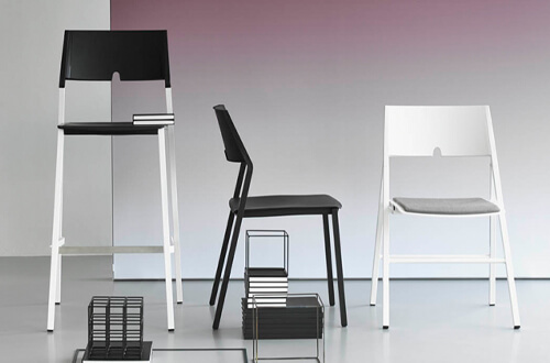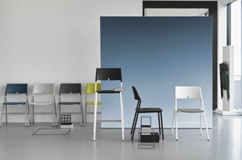 Axa chairs are positioned simply and quickly into the desired configuration. The seat and backrest are made of dyed-through coloured