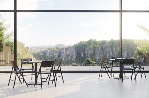 The table top is then placed vertically on the column and the table is fixed by placing the top in a horizontal position.