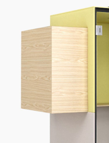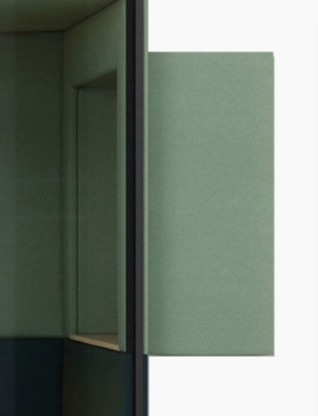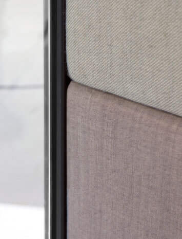Boston comes with ventilation and lighting in the ceiling as standard. Additionally, there are a number of electrical possibilities. Boston can easily be extended with a whiteboard, table and seating elements. Combined with an extensive fabric collection, Boston can be personalised to simply integrate within the space or simply to function as an eye catching design.
