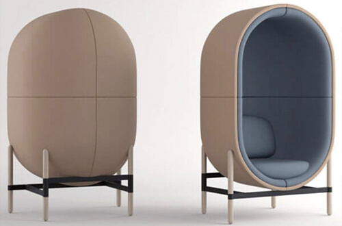 Capsule creates a quiet environment for undisturbed phone calls, reading in and waiting.Privacy is created without being completely disconnected from the environment. Capsule is a stylish object in large office environments. An additional advantage is that Capsule absorbs ambient noise, which benefits the acoustics in the room.