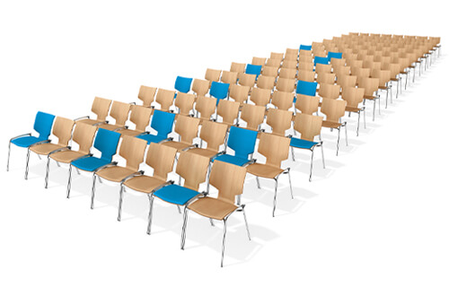Lynx I is available with and without armrests. Both versions can be linked together. Lynx stacking chairs are very suitable as indoor chairs, school chairs, conference chairs and even canteen chairs.