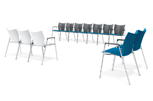 Lynx III is available with and without armrests and can be combined with each other. The elegantly designed shell can also be delivered upholstered.
