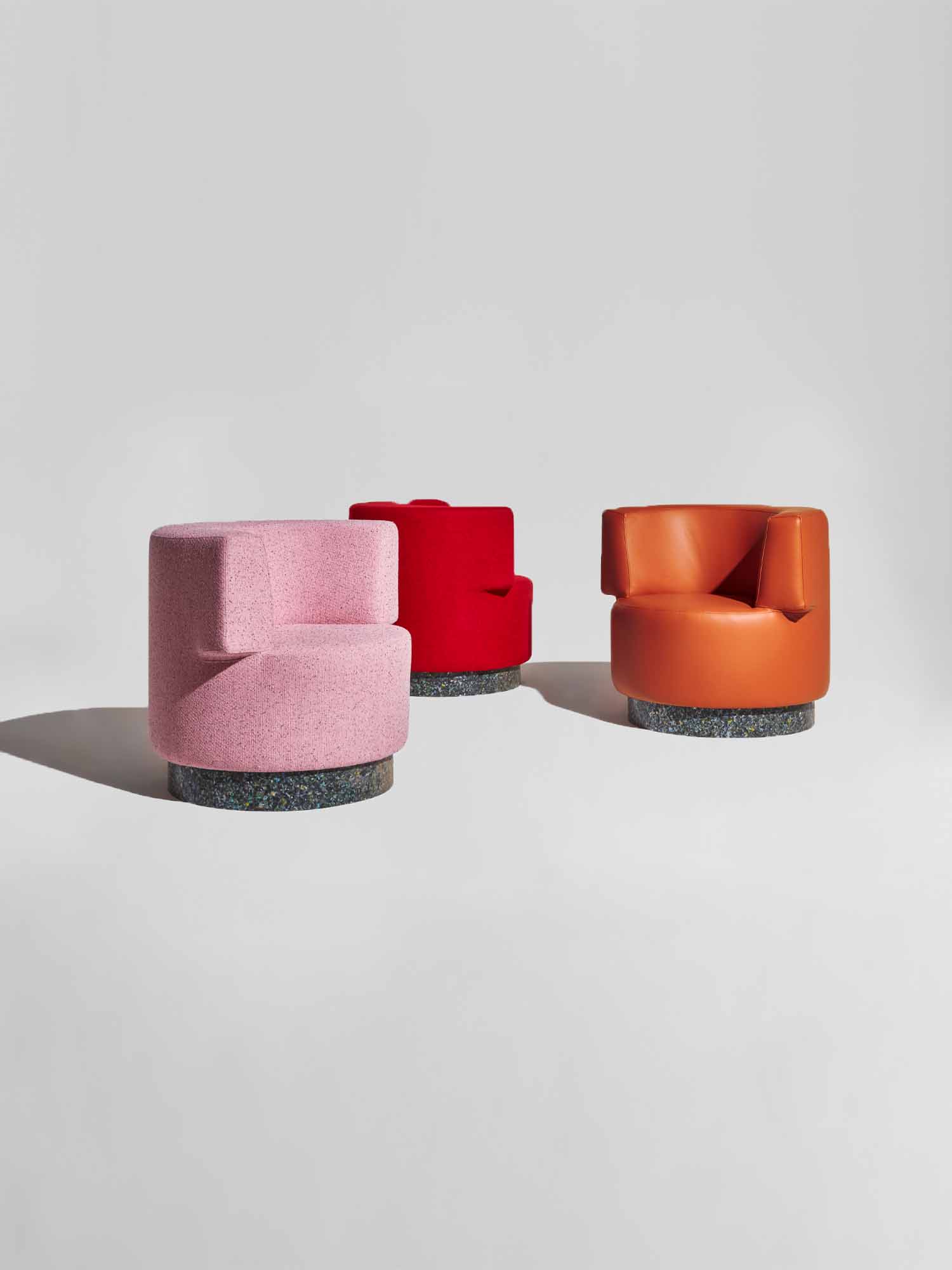 Confetti Modular Lounges are made to configure to your space. Available as separate modules with varying sizes on 2 different base options — 100% recycled plastic or upholstered bases.