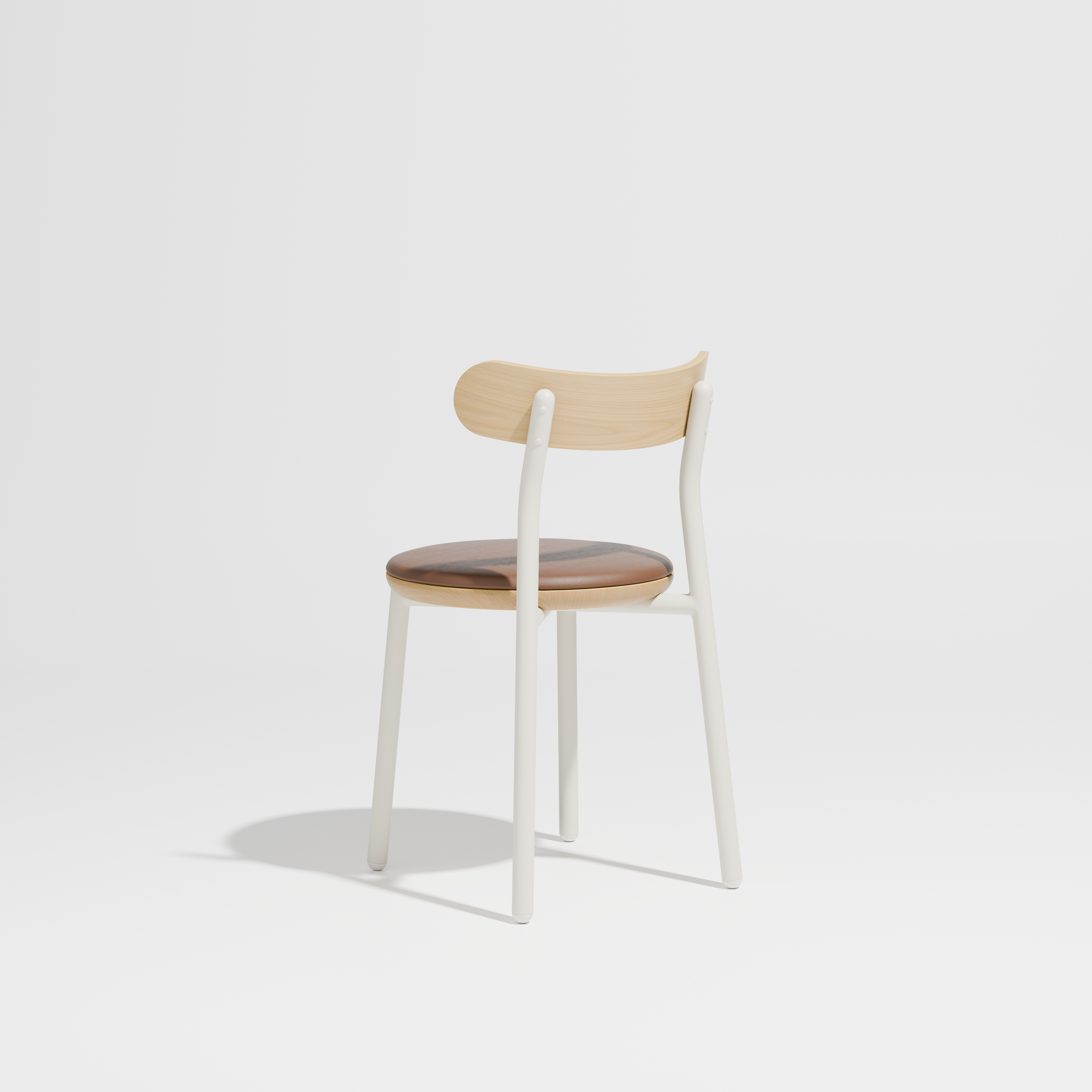 MATERIALS | FSC certified solid timber seat, timber veneer ply backrest, powder coated steel frame, fixed upholstered seat pad.