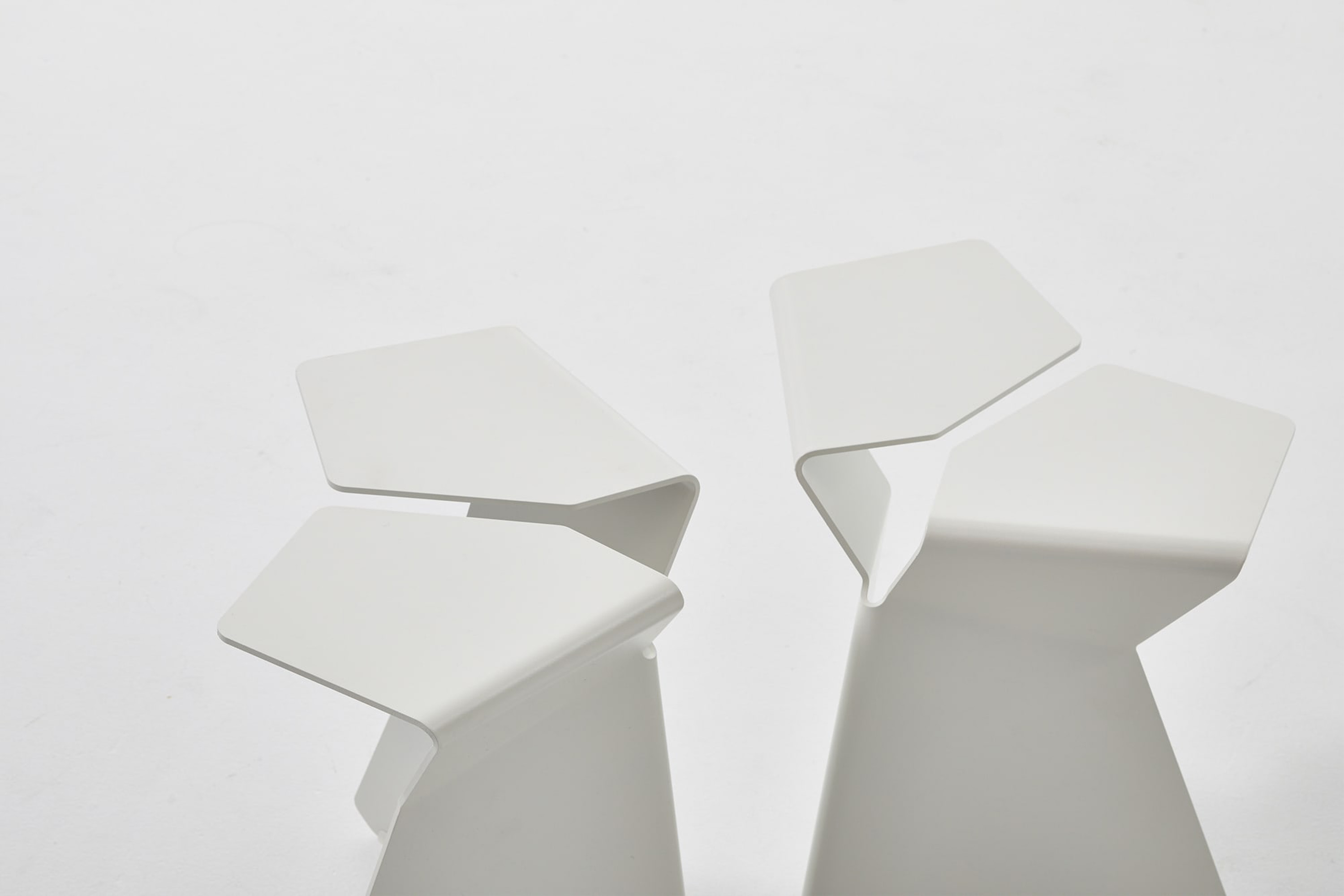 As if crafted from paper, Kimono is a sculpture in aluminium. It's also a practical, stackable, weatherproof stool.