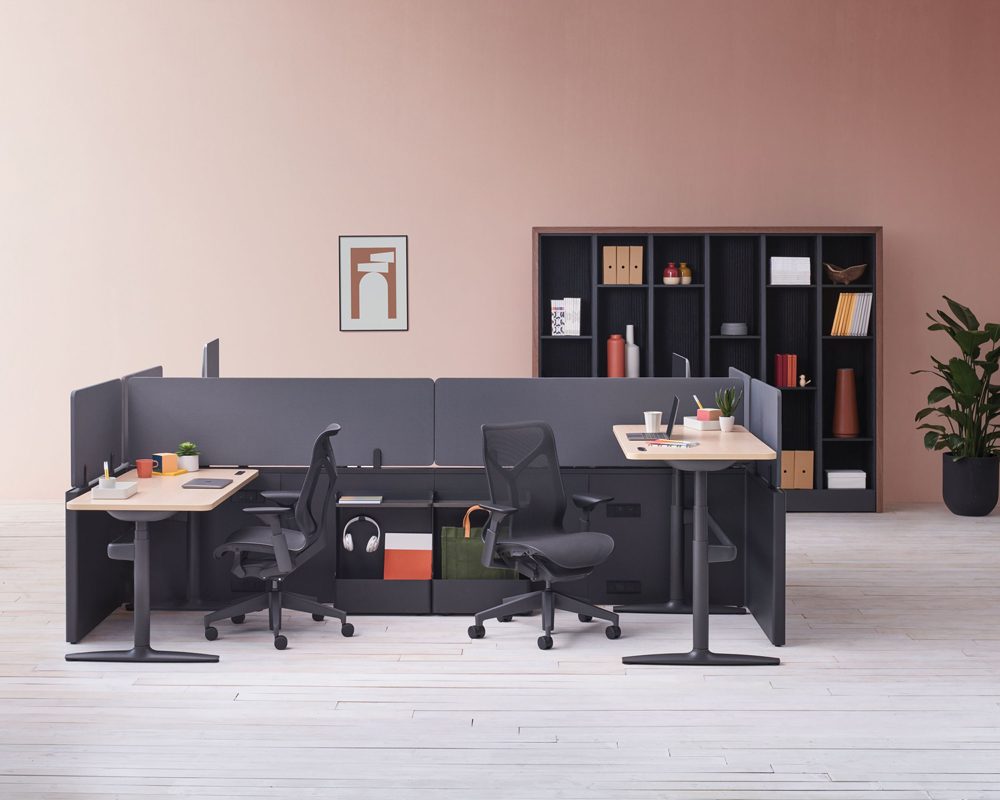 Catena came to life in response to a real-life problem. A global tech company came to Herman Miller with a challenge: create a product that’s primed for future wire management needs as the company grows and changes, and that looks the part, too. While we met the client’s needs, we knew we could improve upon our initial solution. And so, after a year of research and refinement, Catena was born, it has a wire management system that has exceptional capacity, allowing for multiple distribution channels, both horizontally and vertically, with access points anywhere and everywhere they’re needed. Plus it’s all concealed behind clean cladding, keeping usable workspace free of clutter and pesky wires. This clever backbone also acts as a freestanding power station. Place sockets wherever necessary, then plug in and power up.