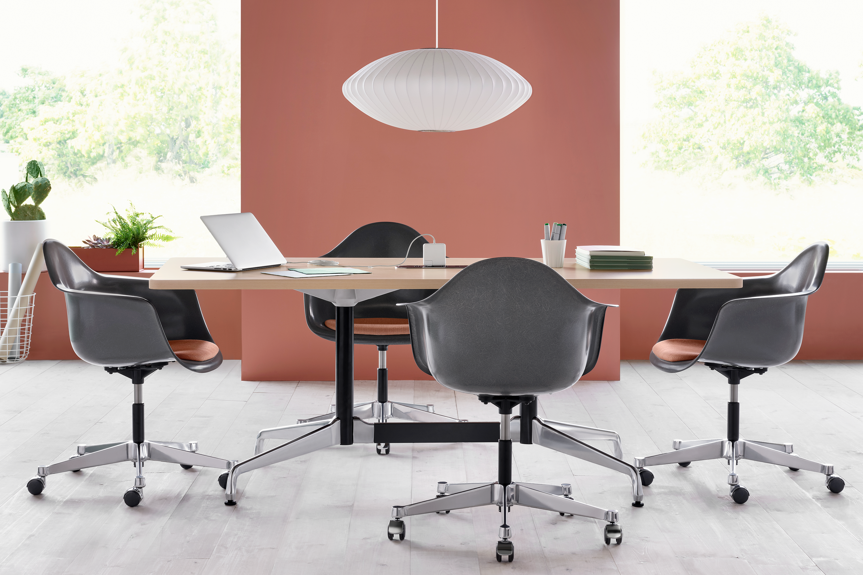 Graceful and versatile, Eames Tables offer a choice of sizes, top shapes and materials, bases and power options. However they’re configured