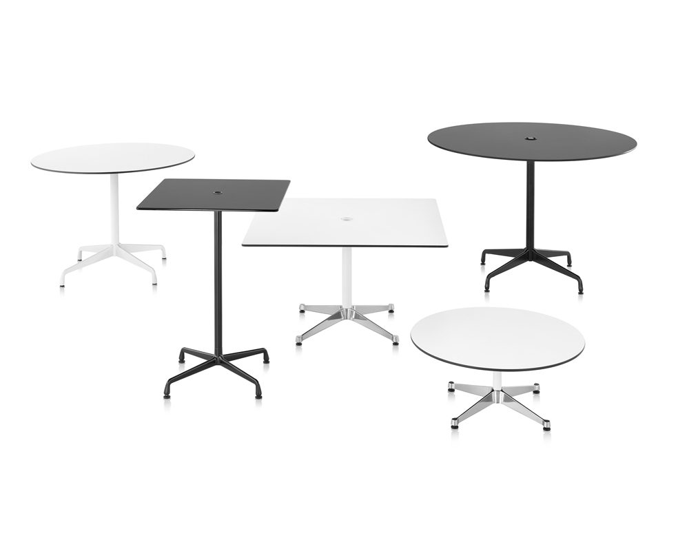 Graceful and versatile, Eames Tables offer a choice of sizes, top shapes and materials, bases, and power options.