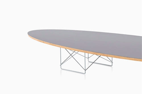 The Eames Wire Base Elliptical Table’s surface length provides an expansive arc that lets you spread out or display items — as many or as few as you like.