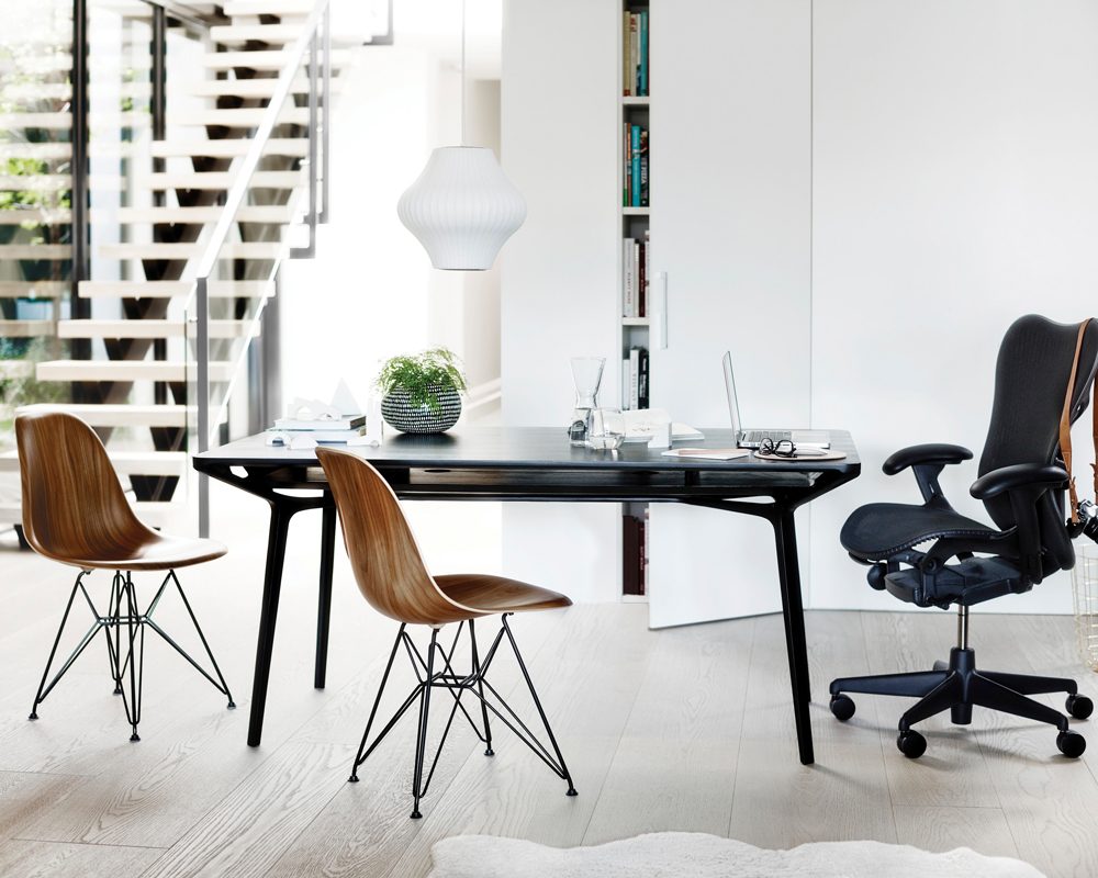 The authentic, single-shell form of the Eames Moulded Wood Chair is achieved through a proprietary process of 3-D veneer manufacturing technology that enables wood veneer to be moulded into complex curves—thus completing the Eameses’ decades-long endeavor to create a wood shell chair.