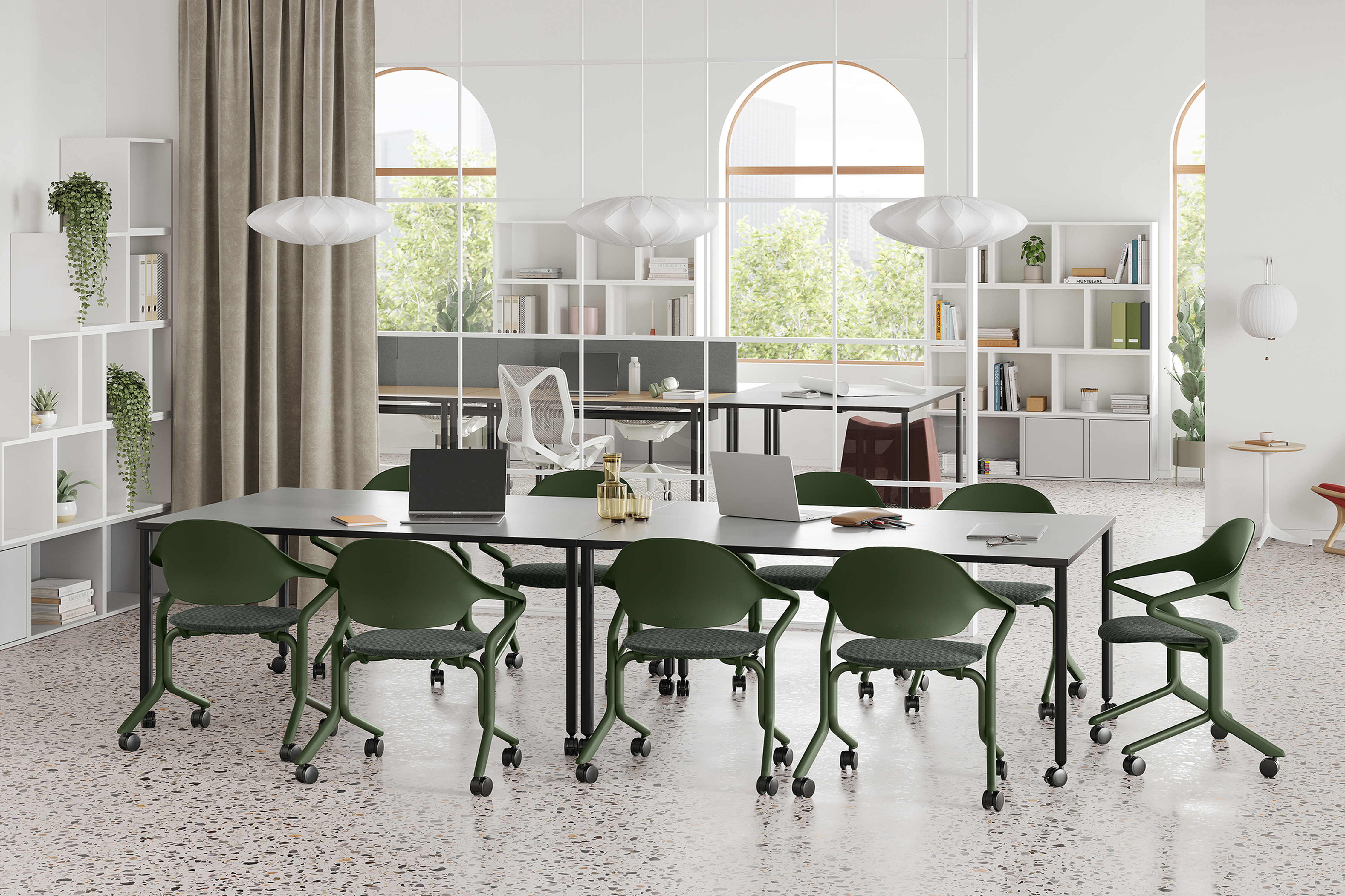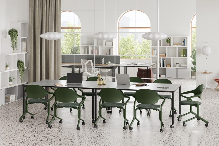With its refreshing aesthetic, Fuld is a standout among horizontal stacking chairs and enables you to reconfigure space for different uses,