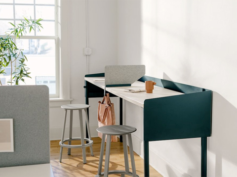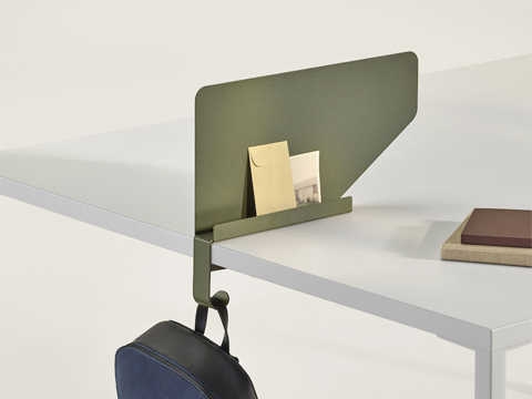 The OE1 Boundary Screen quickly attaches to tables and counters so people can claim their space and get to work. It's compatible with square-edge profiles and most surface thicknesses.