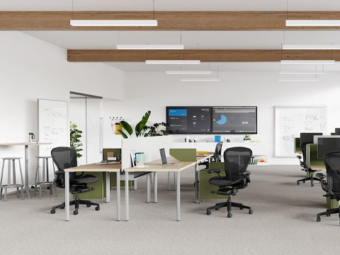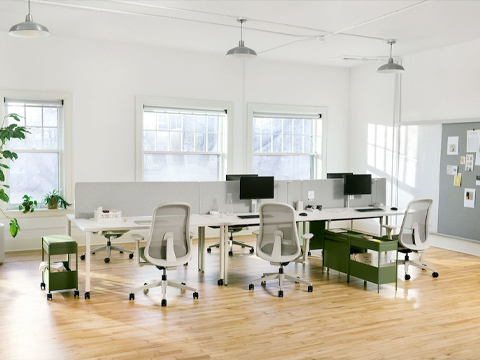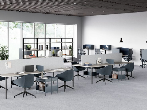 The OE1 Movable Screen lets people set up and rearrange team spaces quickly. Part of the OE1 Workspace Collection.