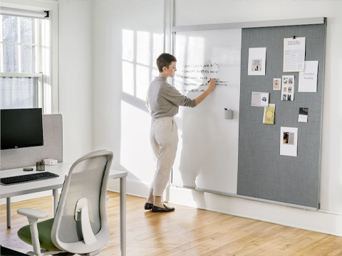 The OE1 Wall Rail and Board can be mounted in project rooms, training rooms, or around the perimeter of open offices. So teams across the organization can capture their ideas wherever they happen.