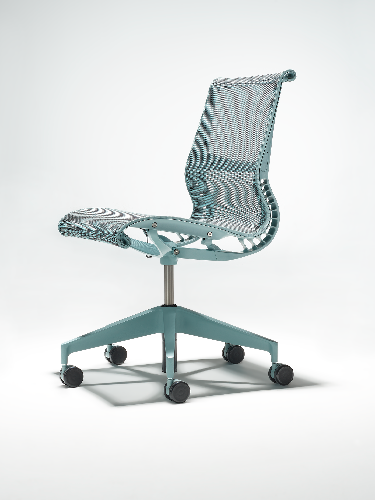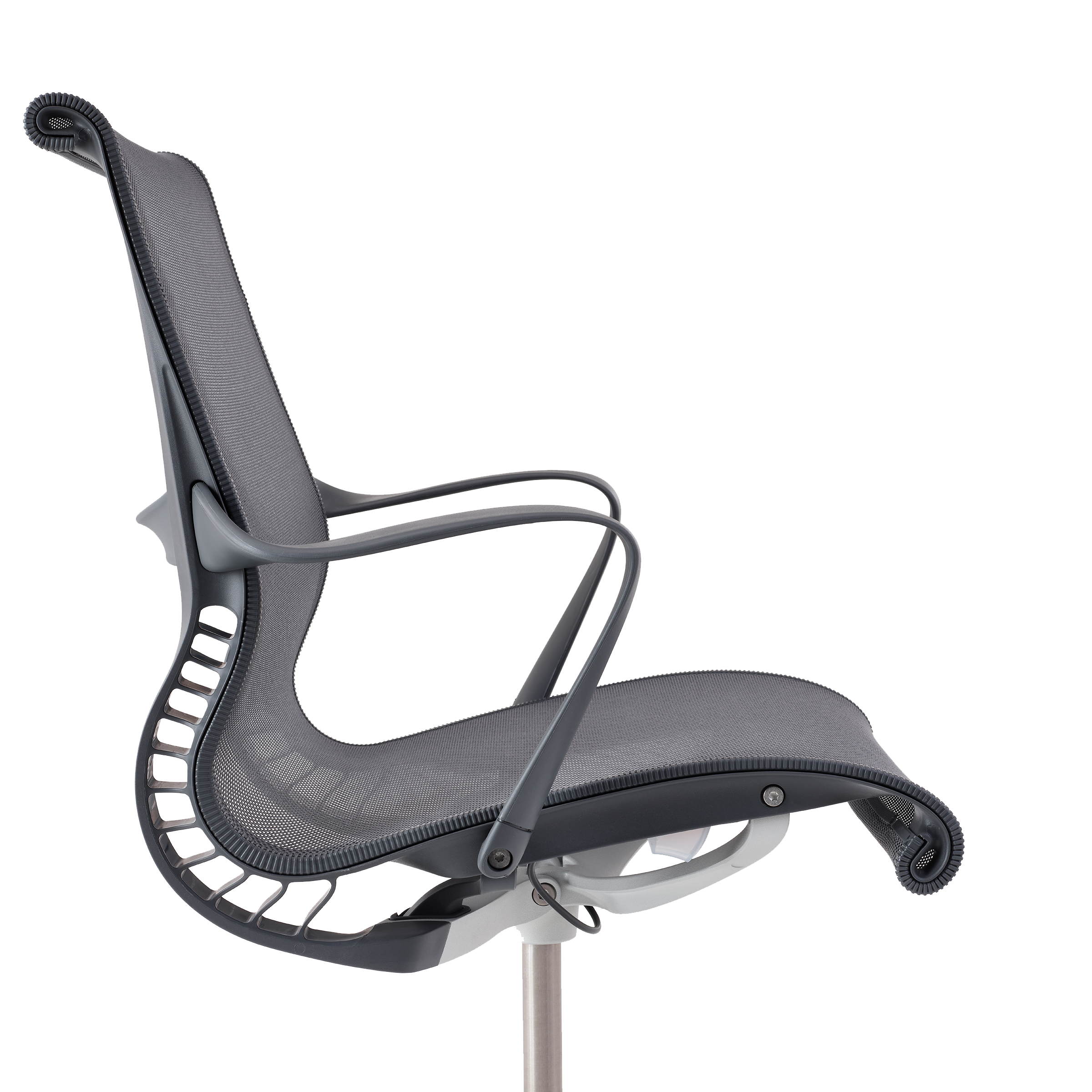 Setu features the Kinematic Spine, which uses two types of polypropylene to control resistance and support your weight as you recline.