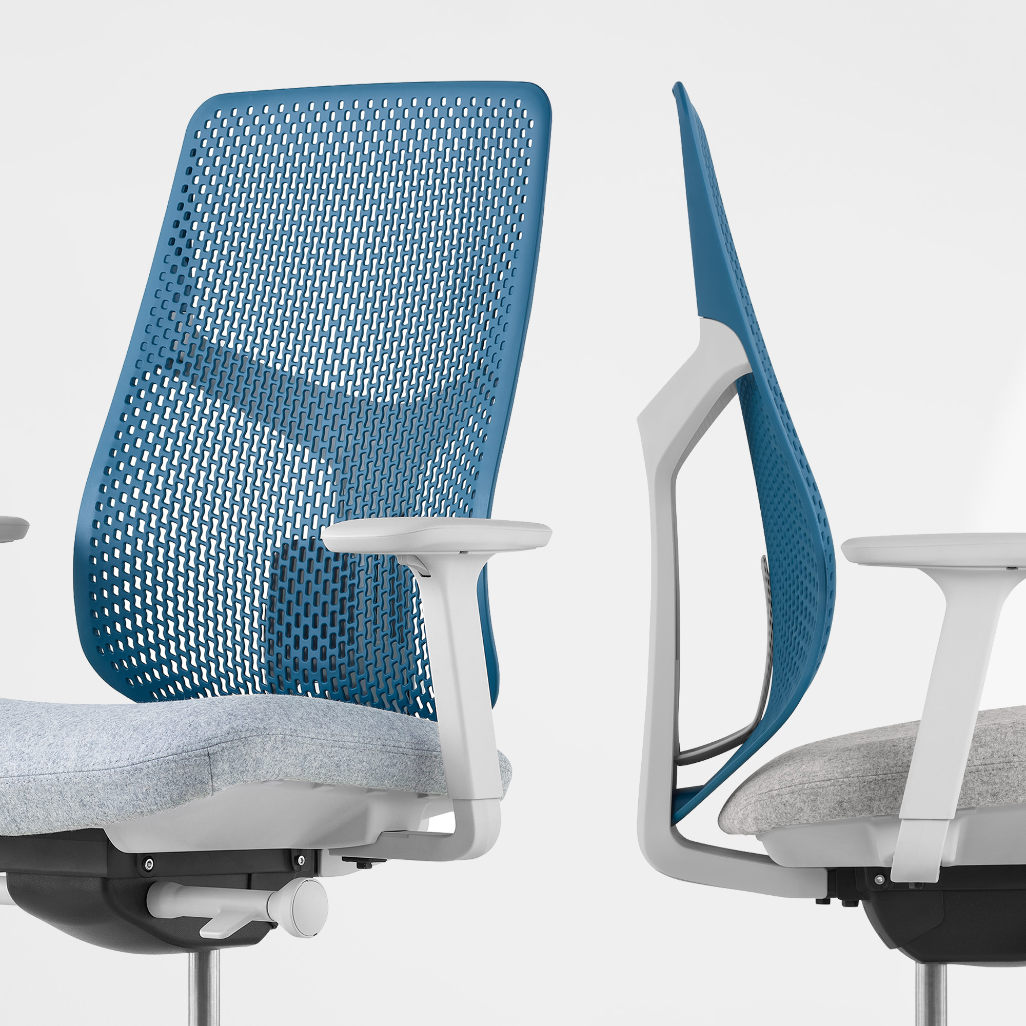 With a quiet, versatile form that comes in a range of colours and fabrics and the option for a suspension, upholstered or TriFlex back, the Verus family flexes easily to any aesthetic.