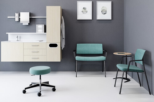The Verus family includes stackable side chairs, work chairs, stools, and Verus Plus—an extra-wide, ergonomic side chair designed to provide comfort for all people in healthcare environments.