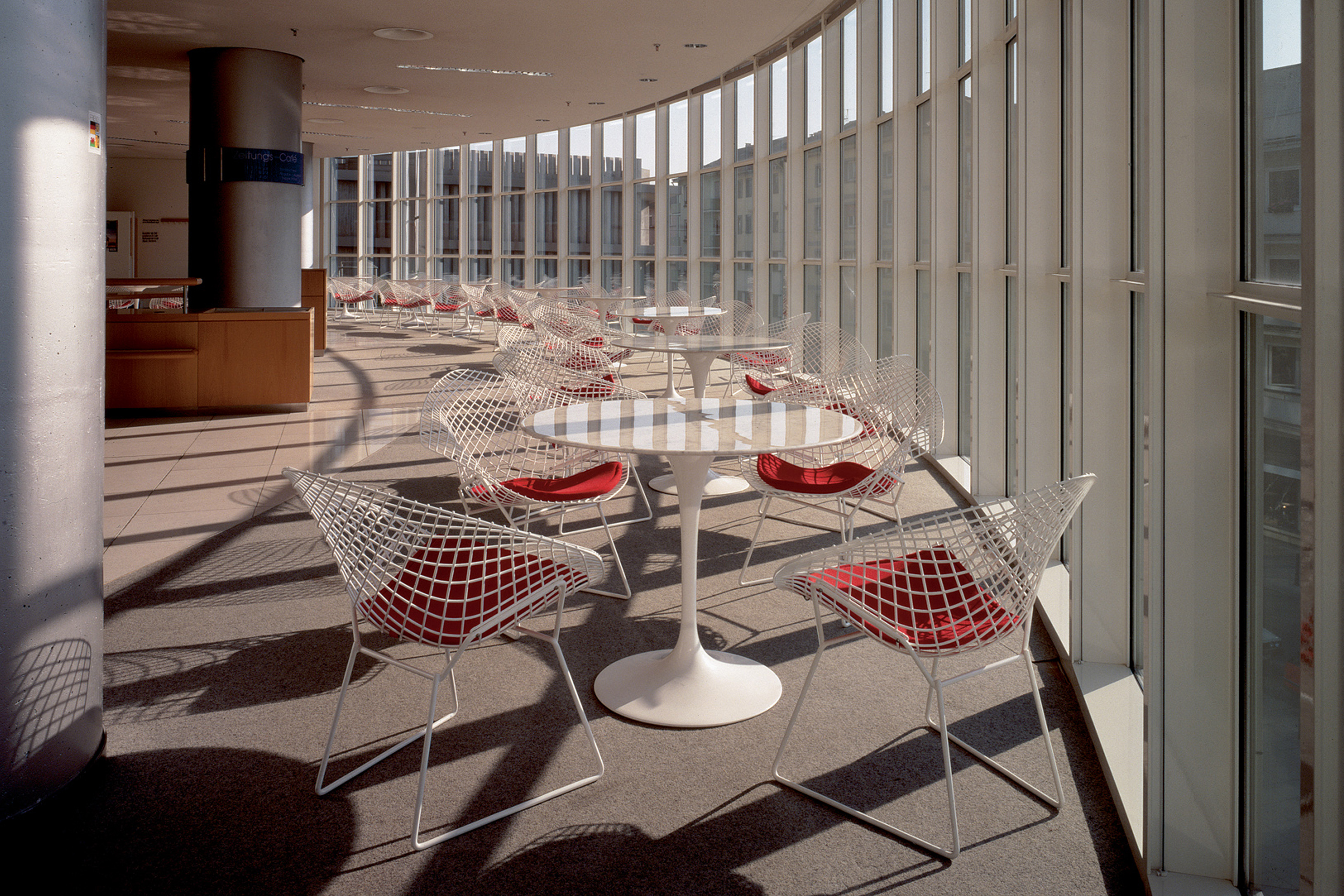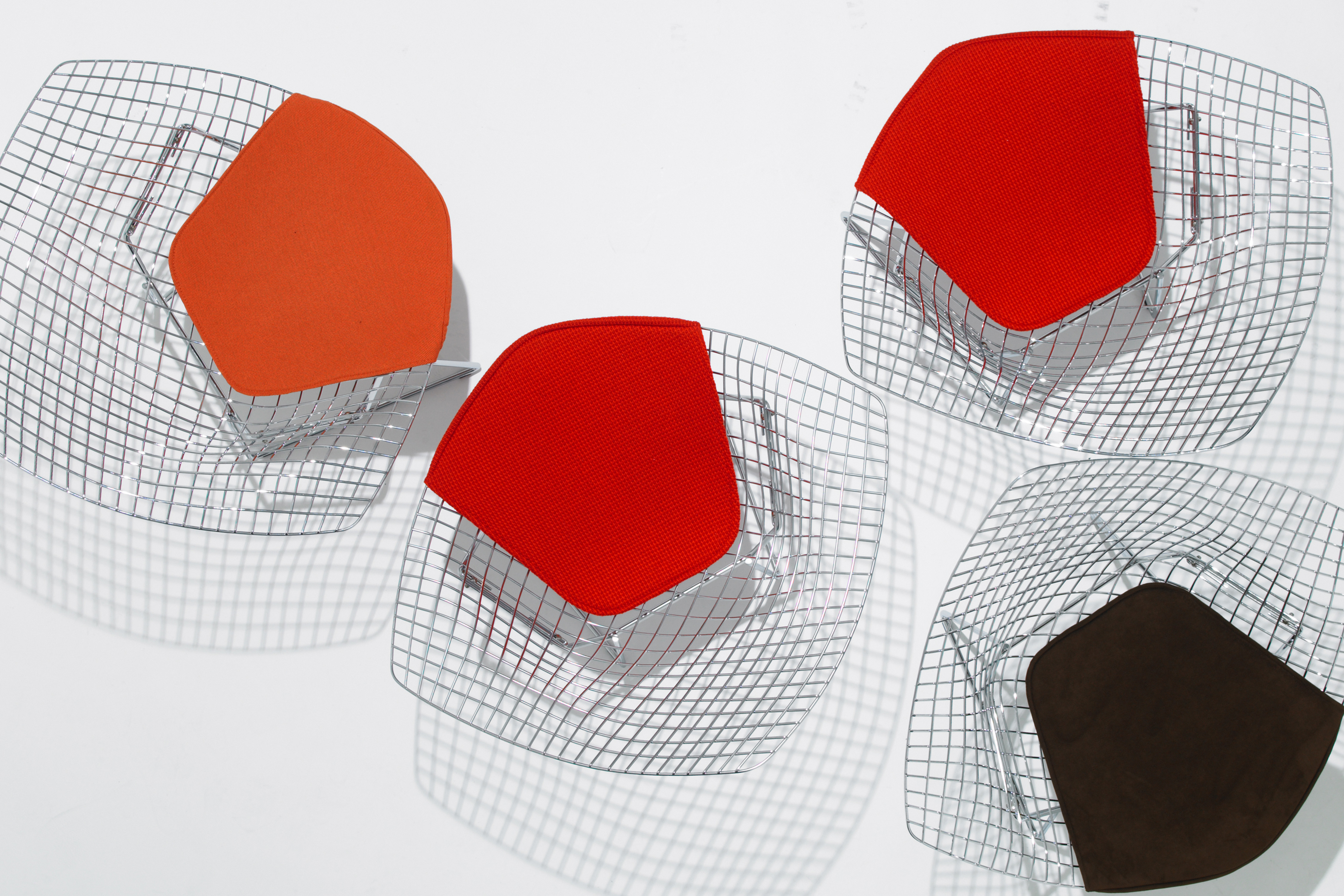 The Diamond Chair is an astounding study in space, form and function by one of the master sculptors of the last century. Like Saarinen and Mies, Bertoia found sublime grace in an industrial material, elevating it beyond its normal utility into a work of art. Harry Bertoia’s wire chairs are among the most recognized achievements of mid-century modern design and a proud part of the Knoll heritage.