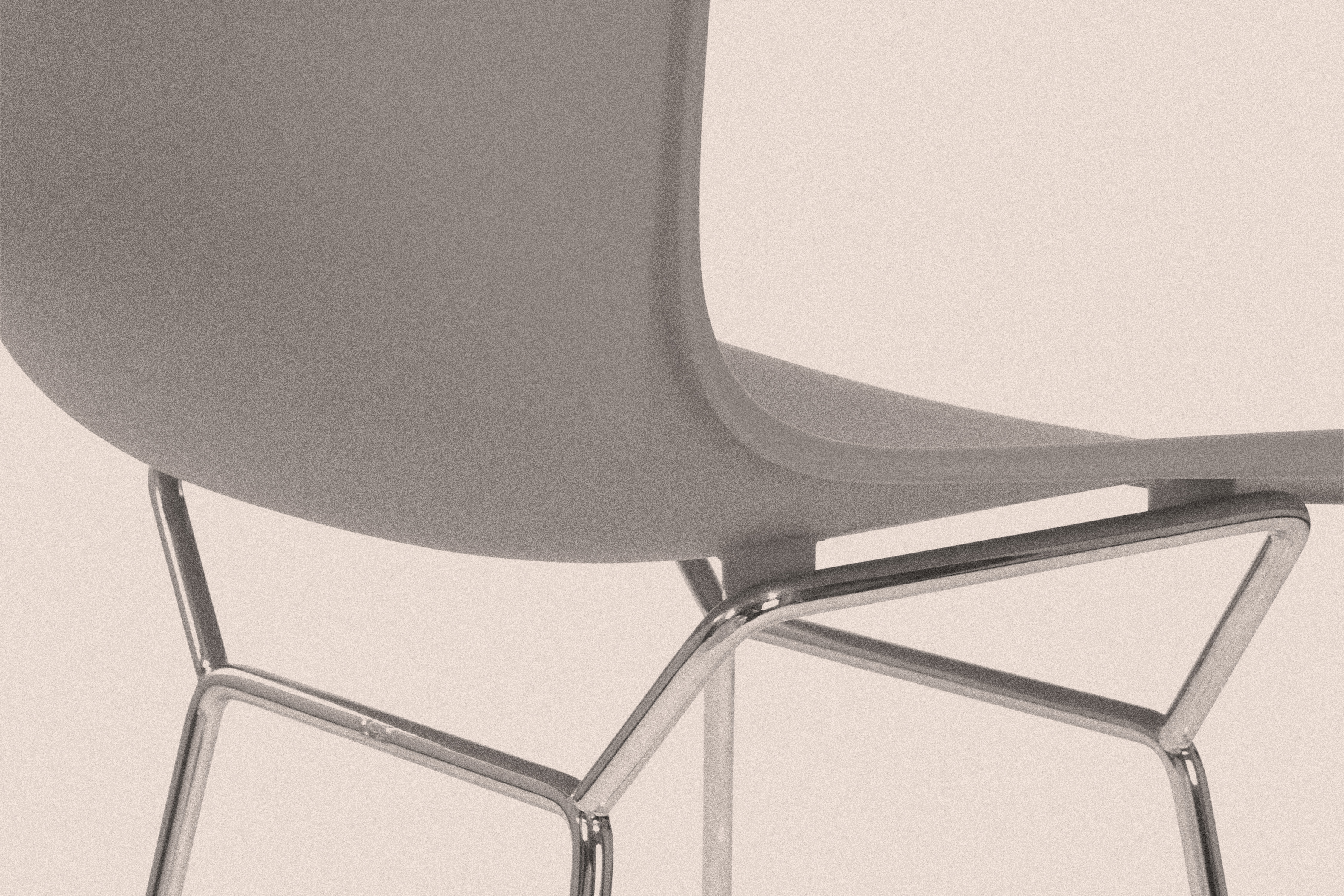 FRAME | Base is constructed of welded steel rods with polished chrome finish (indoor use only) or white or black powder coat (suitable for both indoor and outdoor use). Seat is molded polypropelene