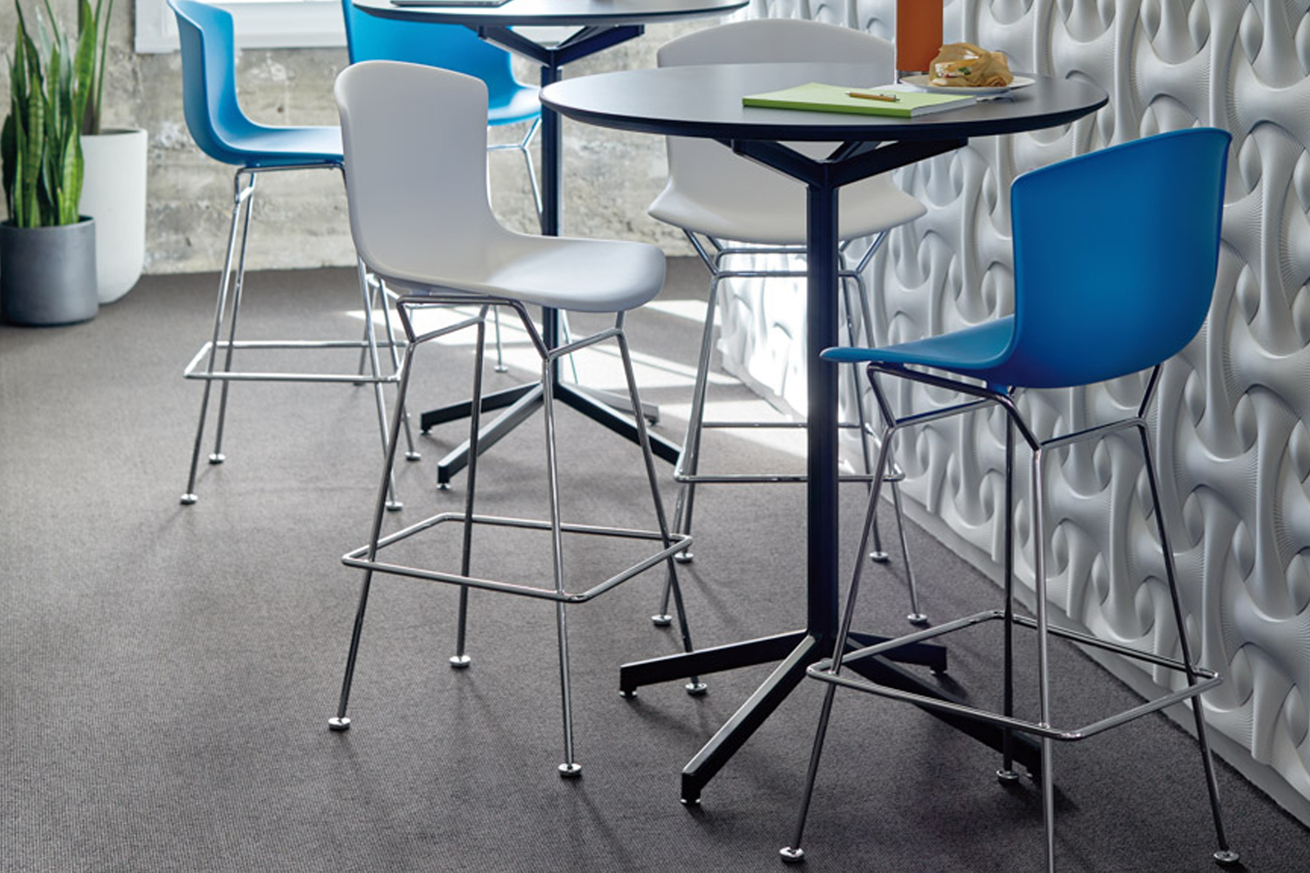 FRAME | Base is constructed of welded steel rods with polished chrome finish (indoor use only) or white or black powder coat (suitable for both indoor and outdoor use). Seat is molded polypropelene