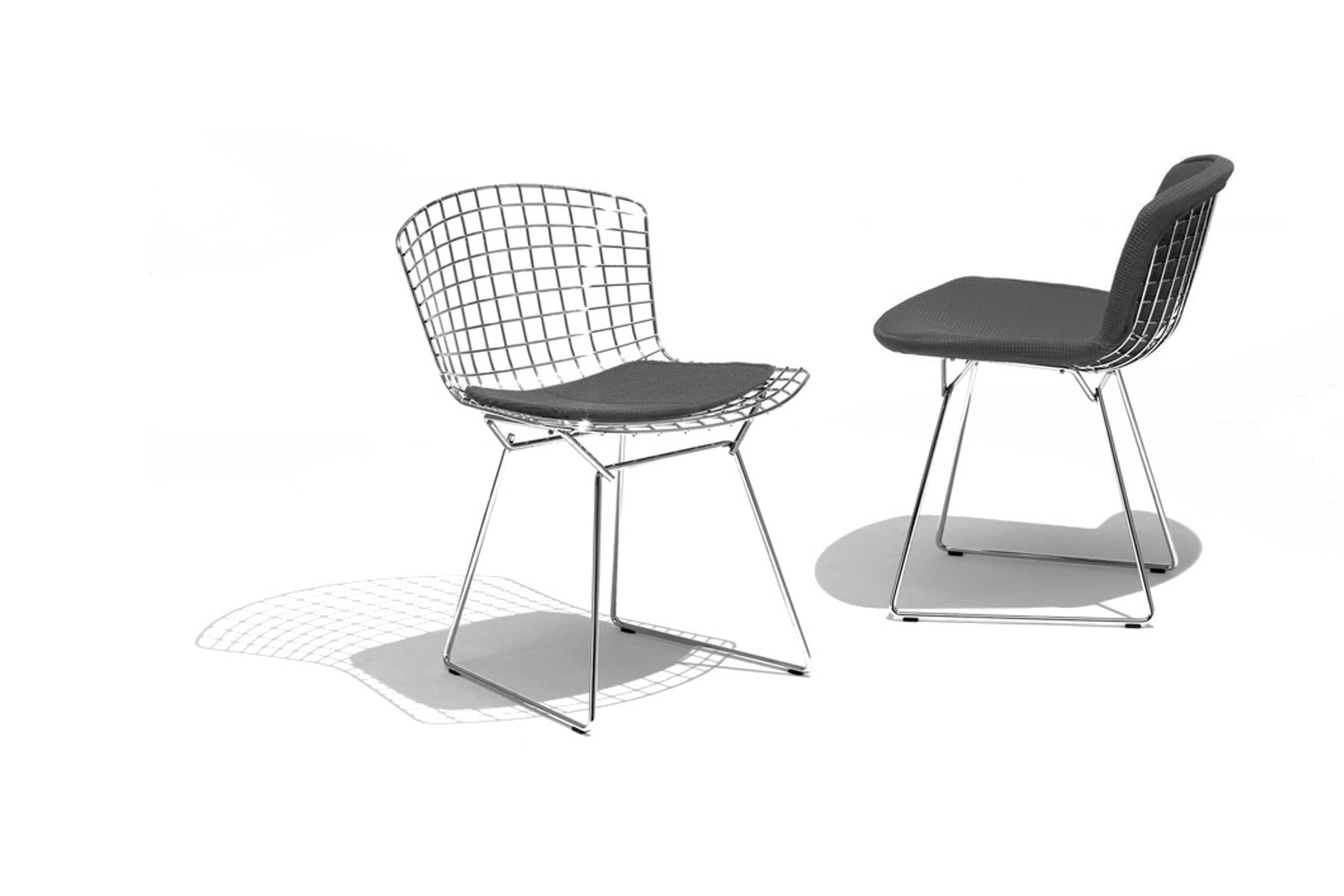 A fully upholstered cover adds softness and texture to the graceful lines and industrial beauty of Harry Bertoia's classic Side Chair. Bertoia’s wire chair collection is among the most recognized achievements of mid-century modern design and a proud part of the Knoll heritage.