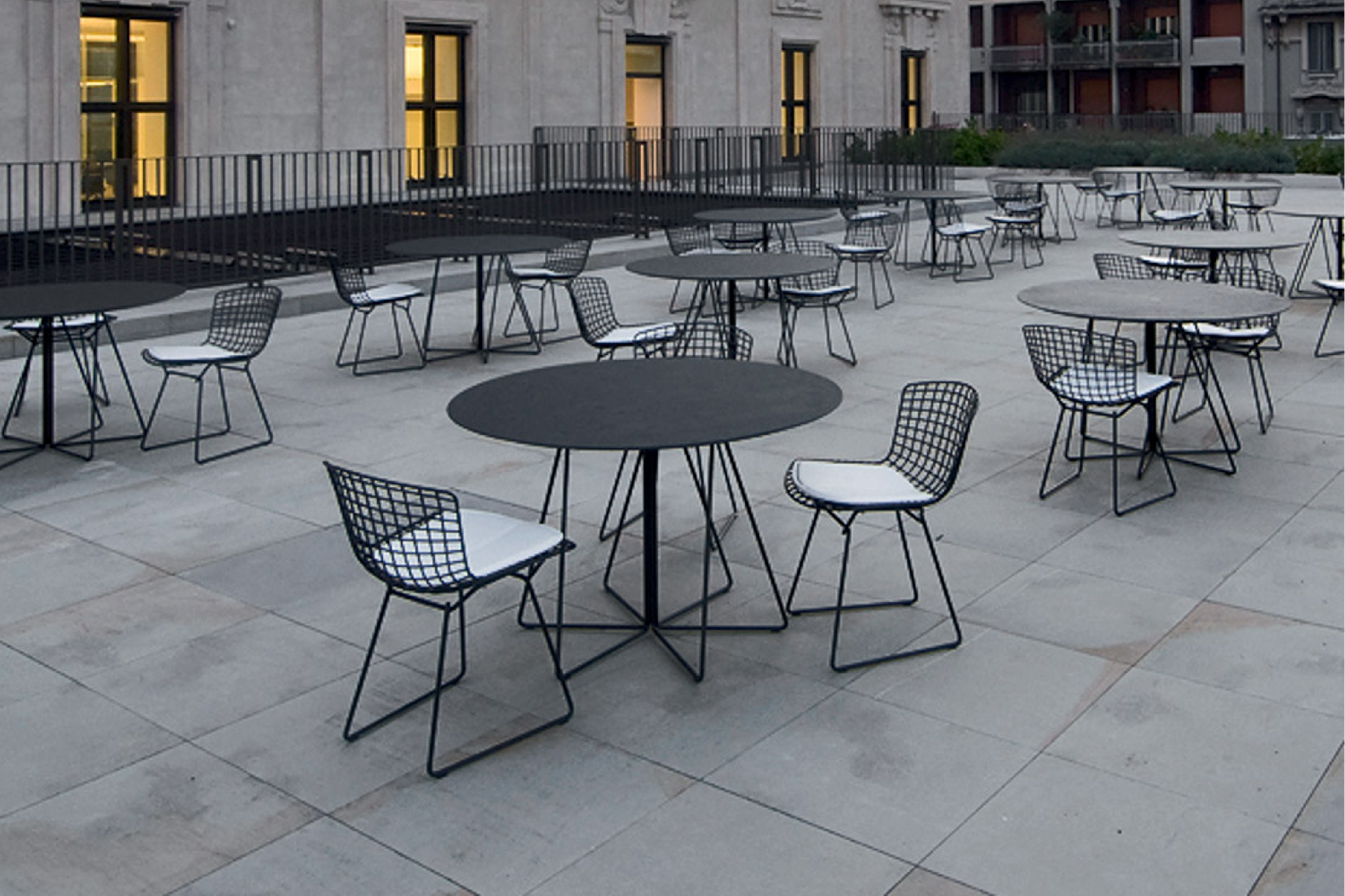 Harry Bertoia’s delicately industrial wire side chairs are among the most recognized achievements of mid-century modern design. Like Saarinen and Mies, Bertoia found sublime grace in an industrial material, elevating it beyond its normal utility into a work of art. The entire 1952 wire collection is an astounding study in space, form and function by one of the master sculptors of the last century and a proud part of the Knoll heritage.