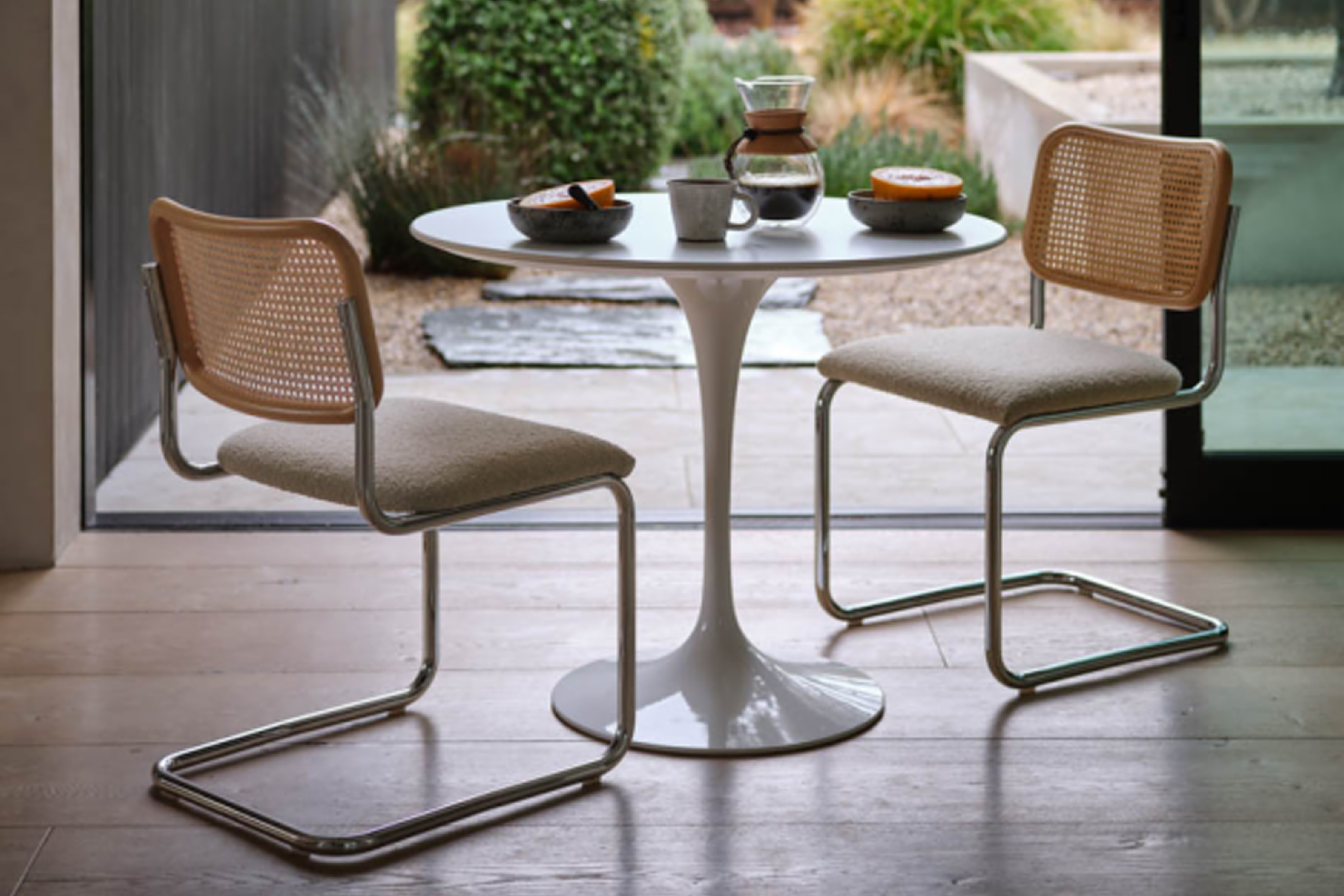 Marcel Breuer married traditional craftsmanship with industrial methods and materials to help make tubular steel furniture an international sensation and a modern institution. The cantilevered form exploits the possibilities unique to the material and gives the chair added flexibility and comfort.
