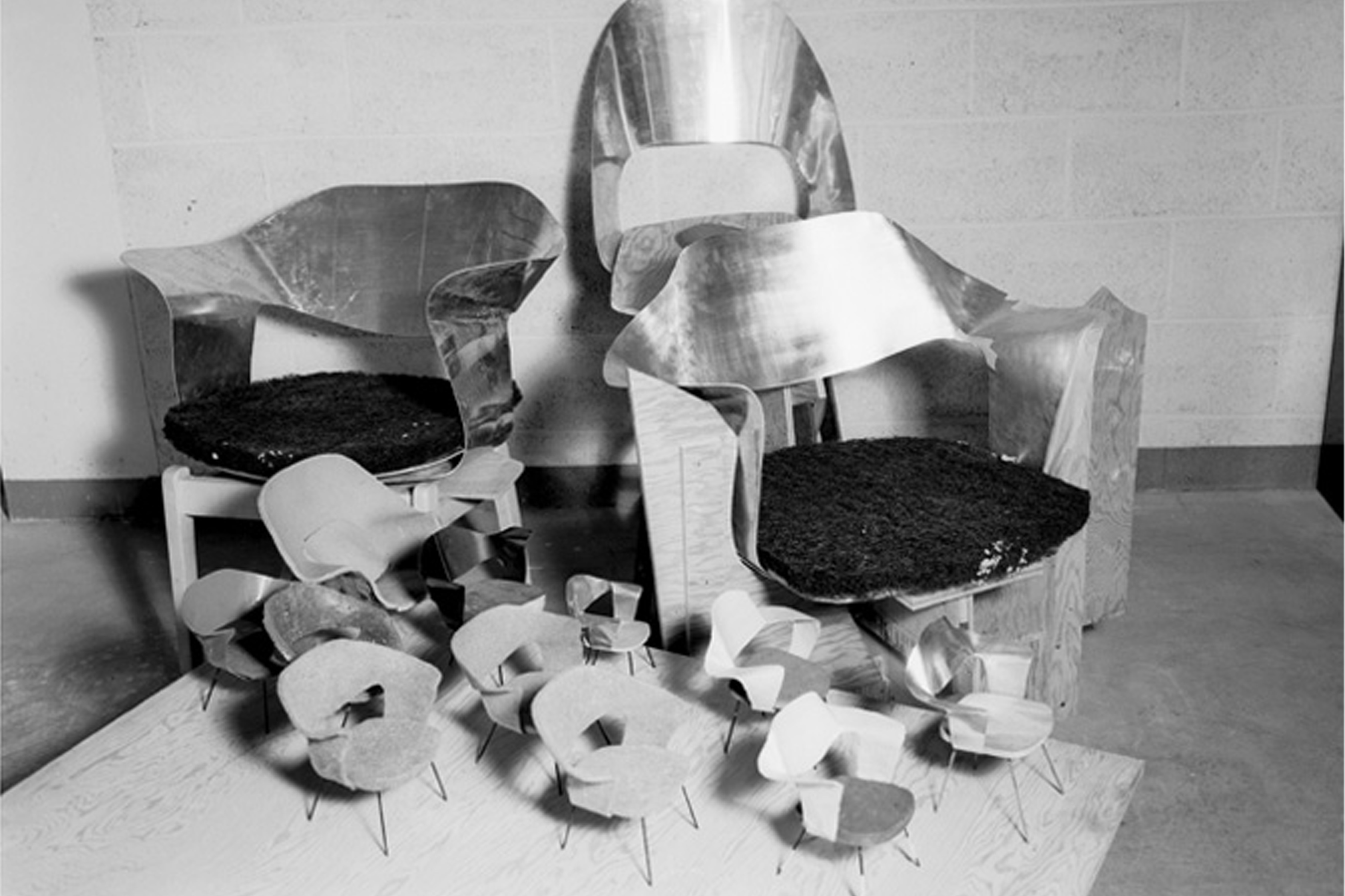 Like many of Saarinen’s furniture designs, the Womb Chair required production techniques and materials still in the infancy of their existence. Saarinen and Florence Knoll found a boat builder in New Jersey who was experimenting with fiberglass and resin to help develop manufacturing methods for the new chair. Florence Knoll: “He was very skeptical. We just begged him. I guess we were so young and so enthusiastic he finally gave in and worked with us. We had lots of problems and failures until they finally got a chair that would work.”