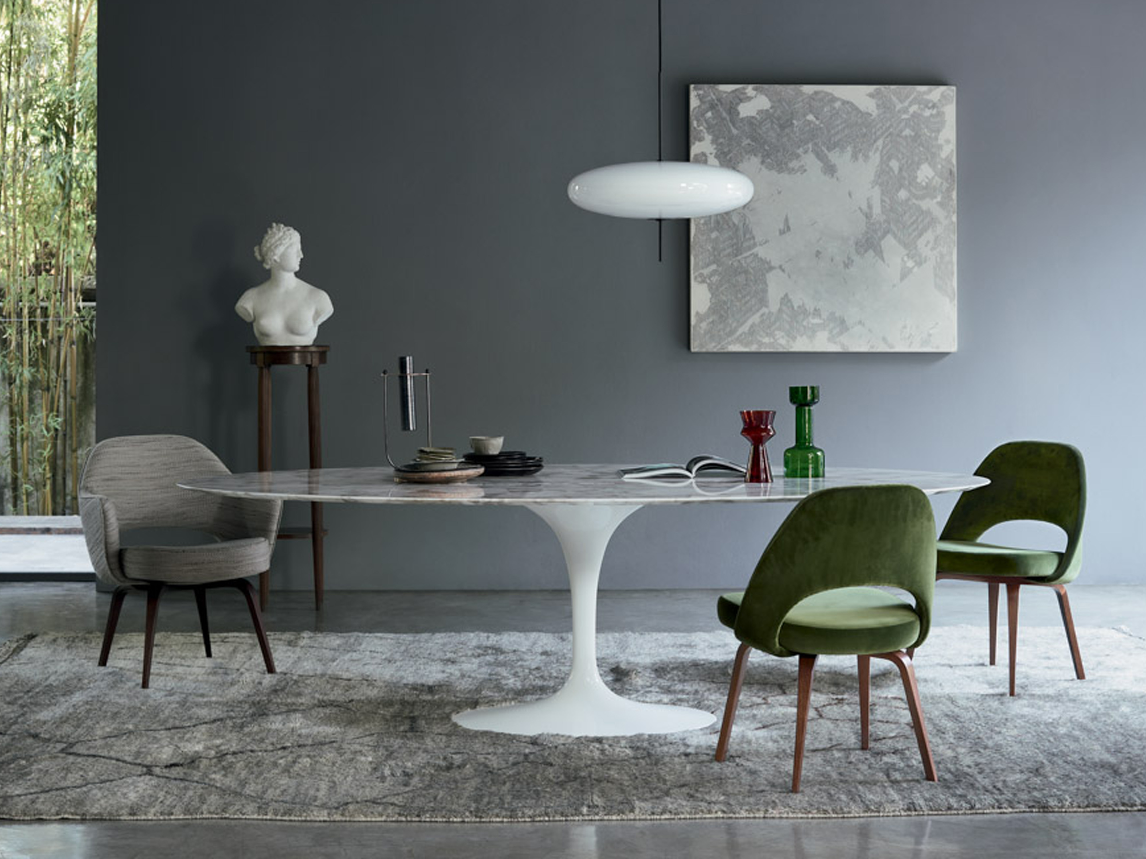 With the Pedestal Collection, Eero Saarinen resolved the "ugly, confusing, unrestful world" underneath tables and chairs. The collection is a