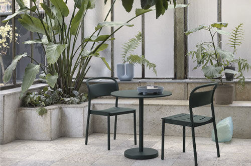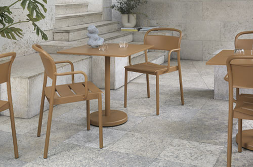 The Linear Café Table is characterised by its clean lines and elegant shapes, allowing for it to complement any outdoor setting.