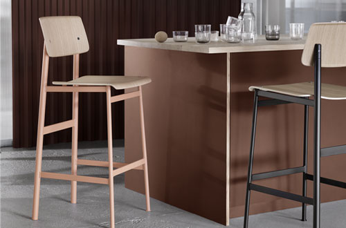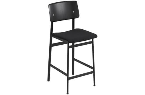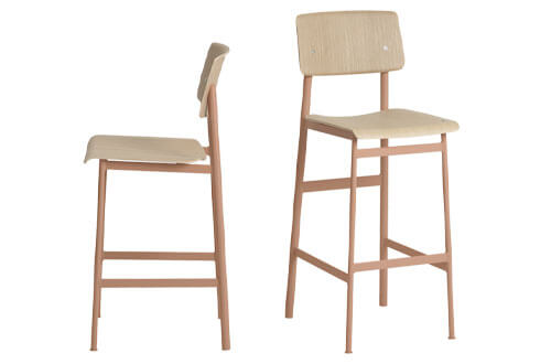 Loft Bar Stool combines Scandinavian design traditions with industrial references for a bar stool with full seat and back along with a small footprint.