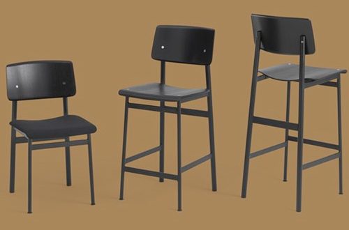 Loft Bar Stool combines Scandinavian design traditions with industrial references for a bar stool with full seat and back along with a small footprint.