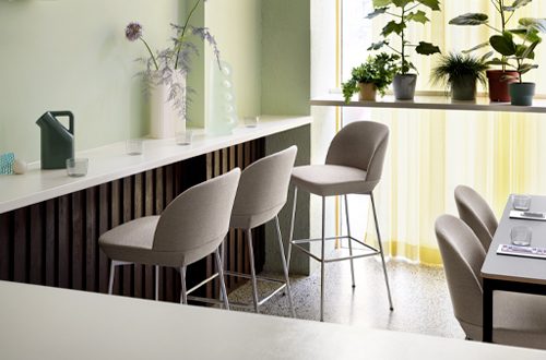 Combining modern, geometric lines with a contemporary expression and comfortably soft seat, the Oslo Counter & Bar Stool brings a refined perspective to the form through its playful lines and embracing back, joined by the comfort of its footrest, allowing its user to sit at multiple angles for many hours at a time.