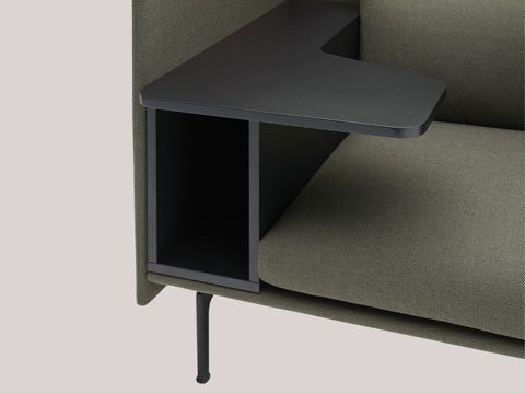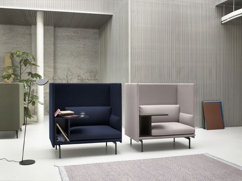 The Outline Highback Work combines the soft, deep seat and clean refined lines of the Outline series with a high-back element and functional elements, allowing for the design to create an acoustic and spatial shelter to work and focus on the given task at hand.