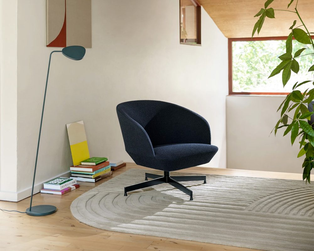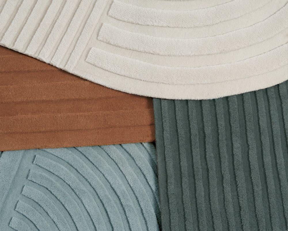 Its striking graphic pattern is produced by trimming the tufted wool in different levels, thereby creating an eye-catching shadowplay that gives a sense of being two-tone rather than monochrome.