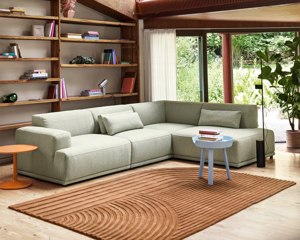 The rug’s single rounded corner gives it a unique character, a dynamic expression in any setting.