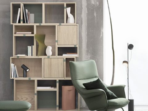 Seen here is a selection of predesigned configurations that bring modern storage to any space of the modern home, be it the living room, hallway, bedroom or kitchen.