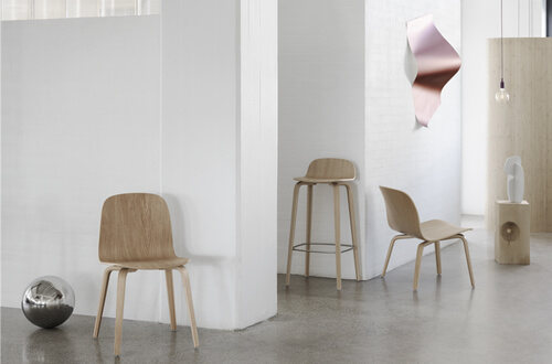 The Visu family of chairs by Finnish designer Mika Tolvanen brings a new perspective to the iconic wooden chair through its shape in form-pressed wood veneer, giving the design an at once modern and comfortably functional character.