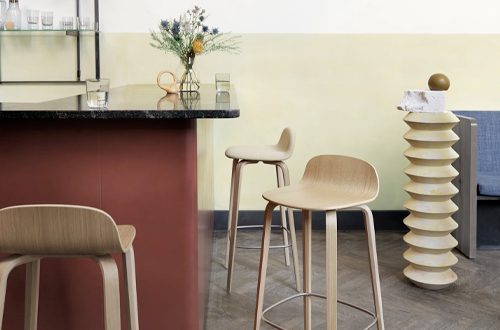 Spanning across chairs, bar stools and lounge chairs, the Visu family comes in a variety of bases, sizes and colours with many possibilities for customisation through colored bases and upholsteries in both textile and leather, allowing for the design to fit within any home or professional project.