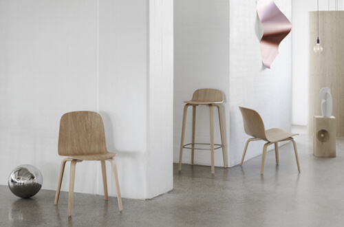 The Visu family of chairs by Finnish designer Mika Tolvanen brings a new perspective to the iconic wooden chair through its shape in form-pressed wood veneer, giving the design an at once modern and comfortably functional character.