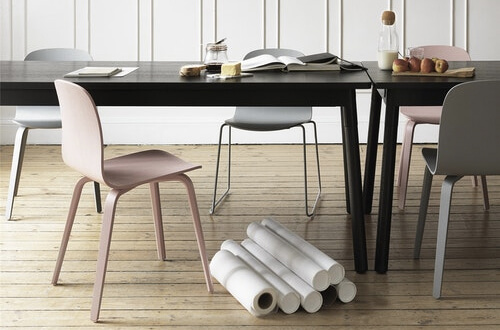 The Visu family of chairs by Finnish designer Mika Tolvanen brings a new perspective to the iconic wooden chair through its shape in form-pressed wood veneer, giving the design an at once modern and comfortably functional character.