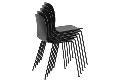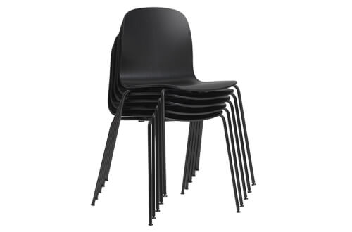 The slim tube legs and form-pressed veneer wood body of the Visu Chair creates quiet lines while making it easily stackable, fit for conferences, office spaces, restaurants or home dining areas.
