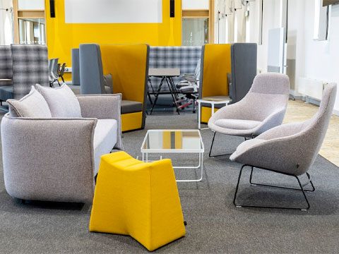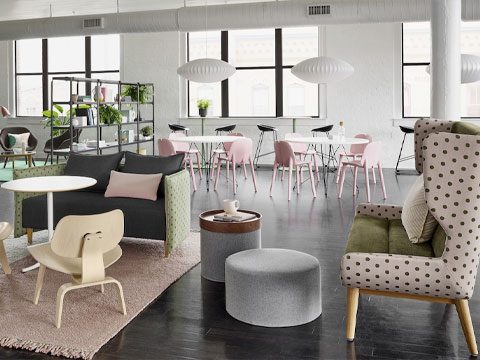 Fully upholstered and available in a wide selection of fabrics with a choice of steel or wooden legs, the sofa pairs well with naughtone’s entire Cloud series.
