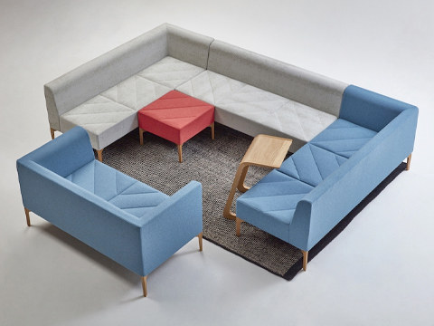 Easily identified by the angled quilting on its seat, Hatch Modular Seating from NaughtOne is designed for effortless configuration.