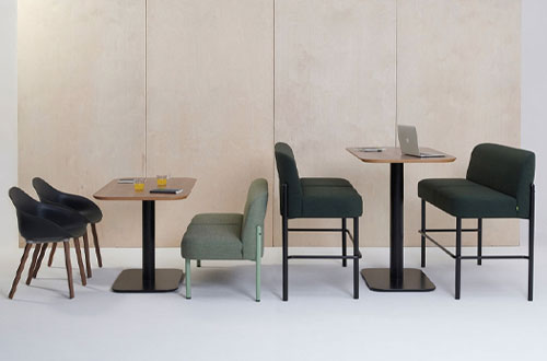 Use Hue sofa with Hue table to create touch down points in awkward spaces.