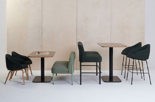 Use Hue sofa with Hue table to create touch down points in awkward spaces.